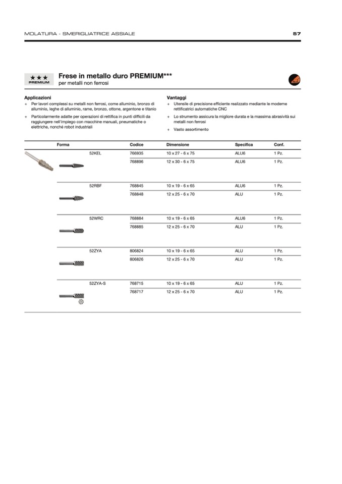+ Particolarmente adatte per operazioni di rettifica in punti difficili da