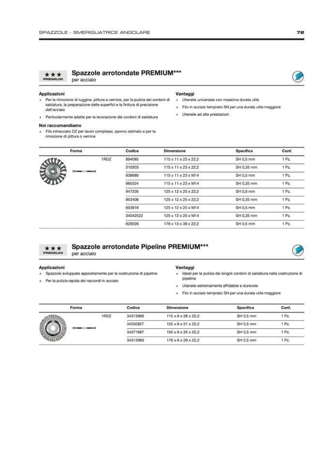 + Particolarmente adatte per la lavorazione dei cordoni di saldatura