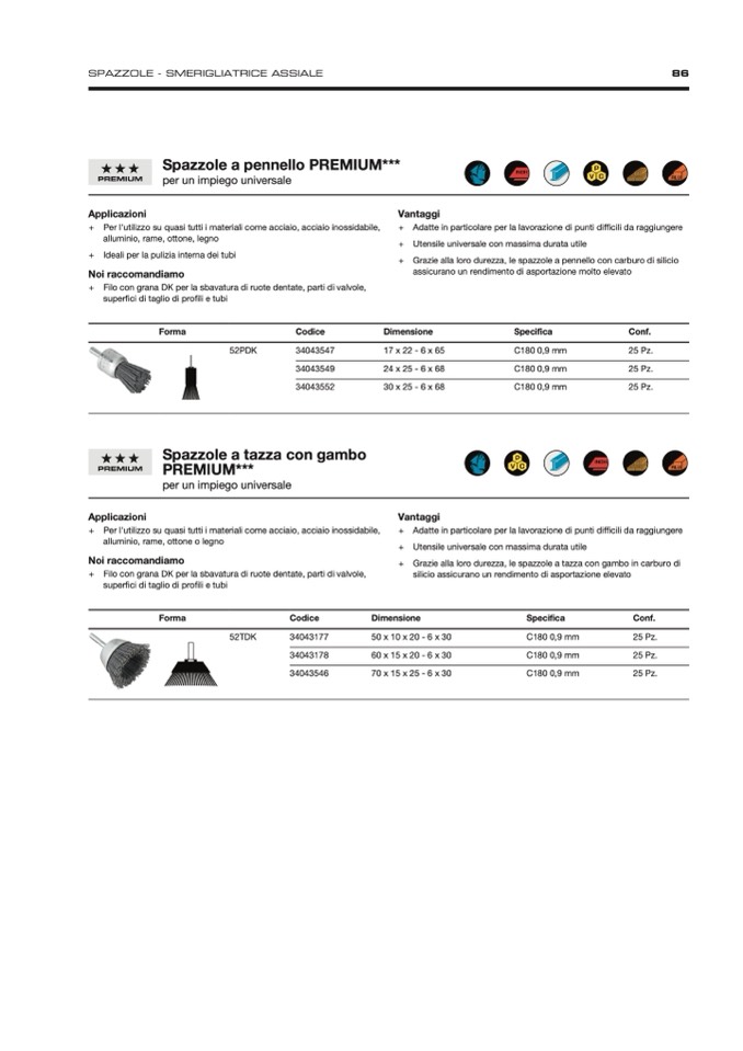 + Grazie alla loro durezza, le spazzole a pennello con carburo di silicio