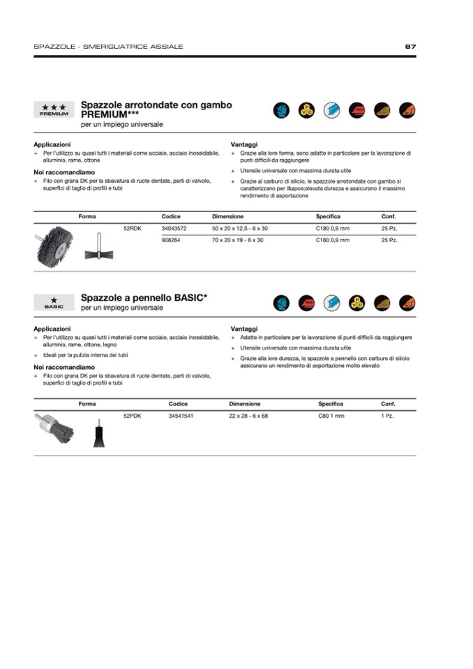 + Grazie alla loro durezza, le spazzole a pennello con carburo di silicio