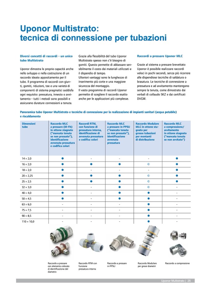 Panoramica tubo Uponor Multistrato e tecniche di connessione per la realizzazione di impianti sanitari (acqua potabile)