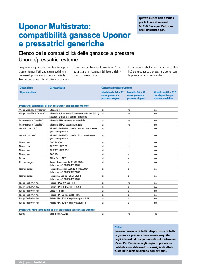 Pressatrici compatibili di altri costruttori con ganasce Uponor: