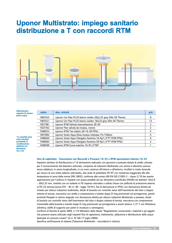 Voci di capitolato - Esecuzione con Raccordi a Pressare 16-32 e RTM apressatura interna 16-25