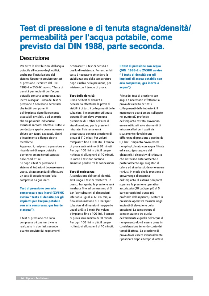 sistema Uponor è previsto un test