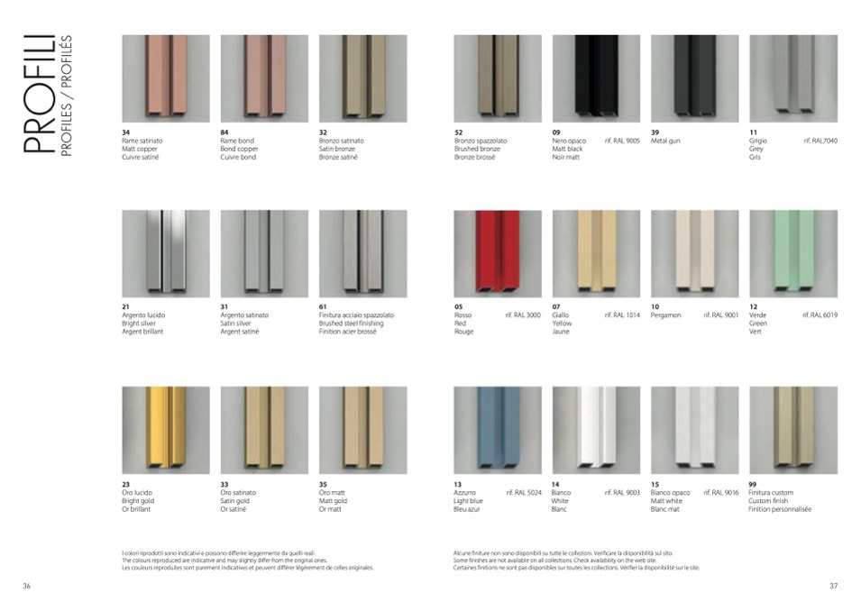 Alcune finiture non sono disponibili su tutte le collezioni. Verificare la disponibilità sul sito.