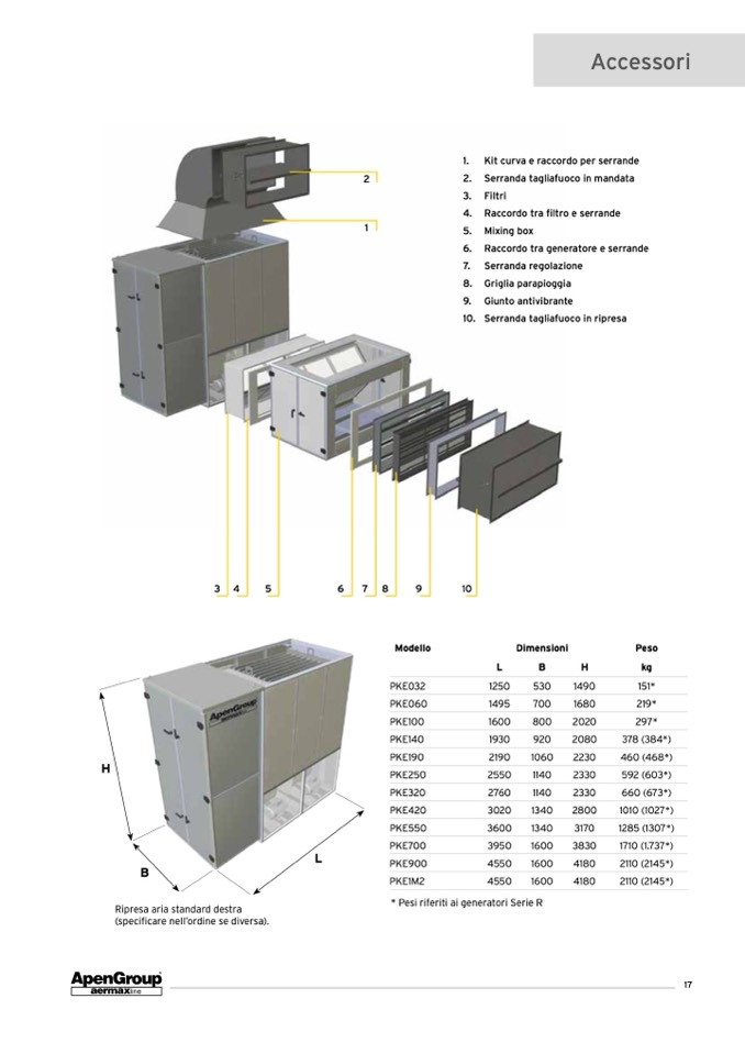 * Pesi riferiti ai generatori Serie R