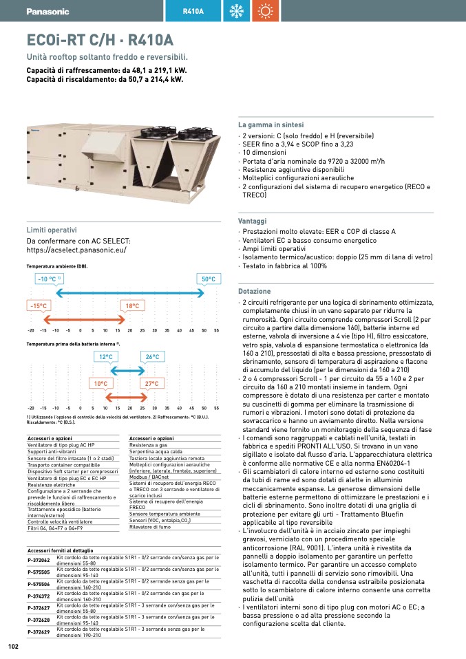 Capacità di raffrescamento: da 48,1 a 219,1 kW.
