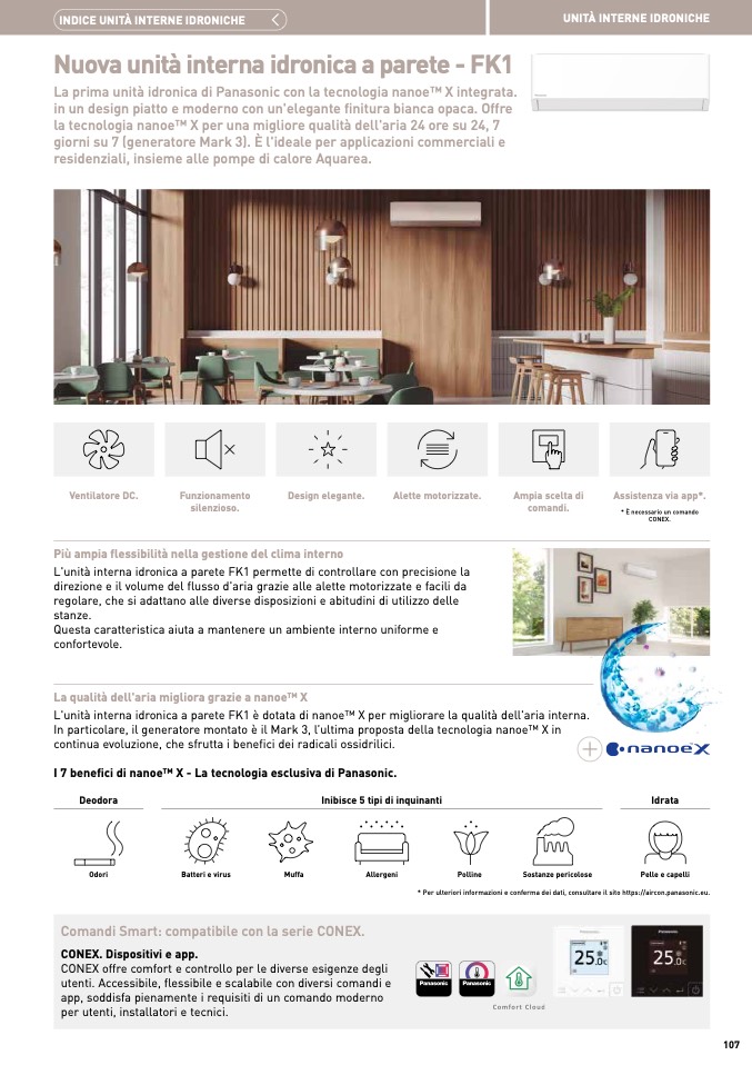 L'unità interna idronica a parete FK1 è dotata di nanoe™ X per migliorare la qualità dell'aria interna