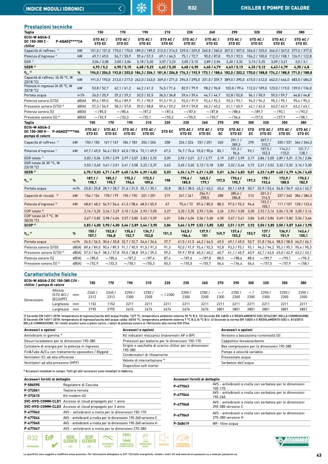 1) Secondo EN 14511-2018: temperatura di ingresso/uscita dell'acqua fredda: 12/7 °C, temperatura ambiente esterna 35 °C B.S. (2) Secondo EN 14825 e il REGOLAMENTO (UE) 2016/2281 DELLA COMMISSIONE