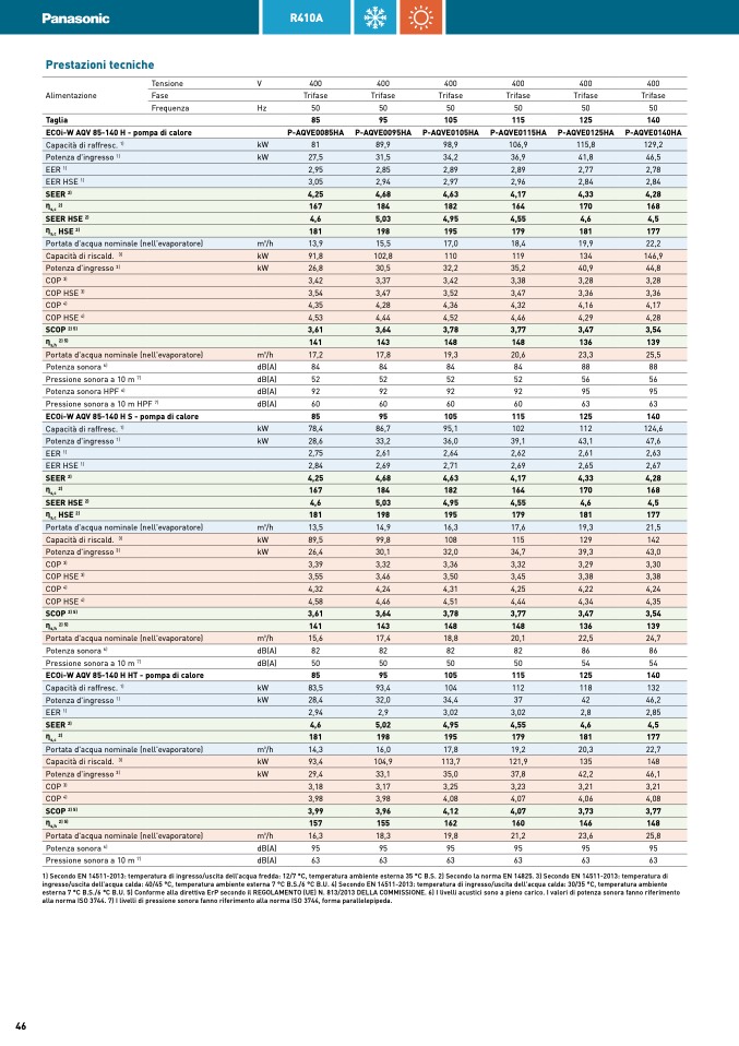 esterna 7 °C B.S./6 °C B.U. 5) Conforme alla direttiva ErP secondo il REGOLAMENTO (UE) N. 813/2013 DELLA COMMISSIONE. 6) I livelli acustici sono a pieno carico. I valori di potenza sonora fanno riferimento