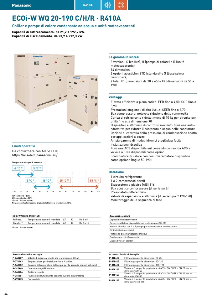Capacità di riscaldamento: da 23,7 a 212,3 kW