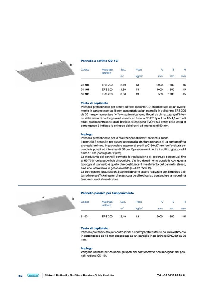 Pannello prefabbricato per contro-soffitto radiante CD-10i costituito da un rivesti-