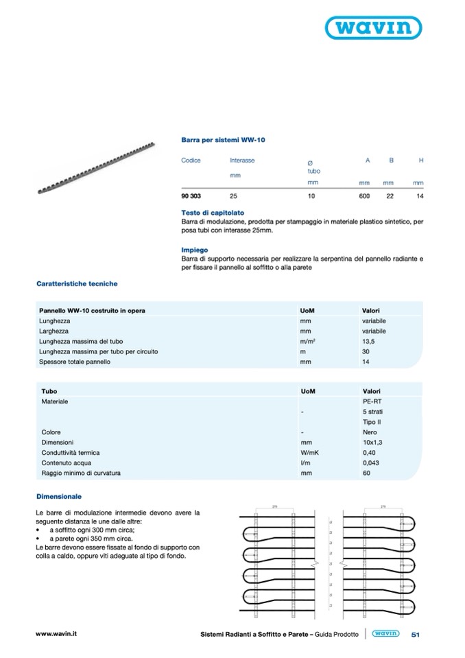 Barra di supporto necessaria per realizzare la serpentina del pannello radiante e