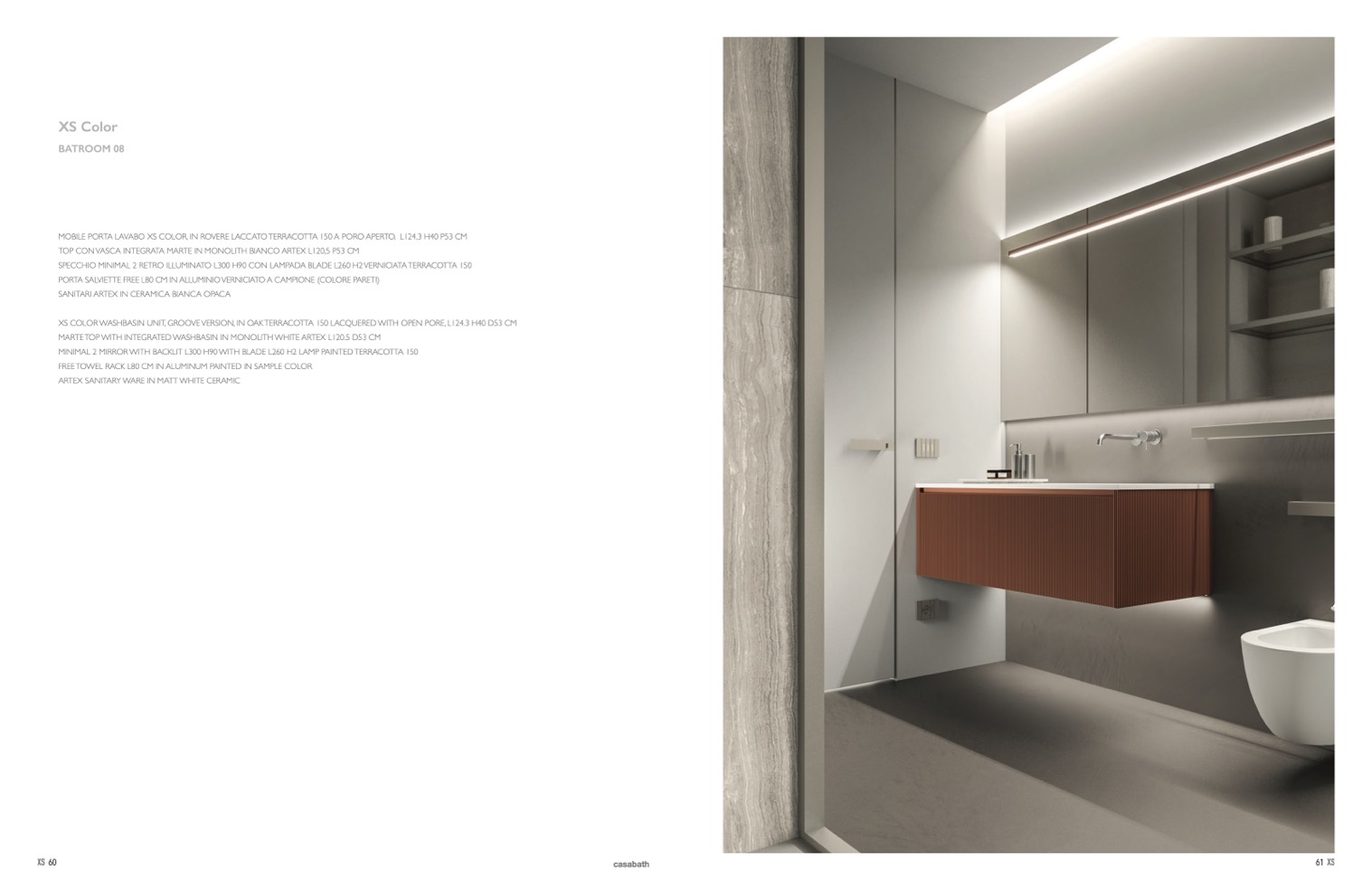 XS COLOR WASHBASIN UNIT, GROOVE VERSION, IN OAK TERRACOTTA 150 LACQUERED WITH OPEN PORE, L124.3 H40 D53 CM
