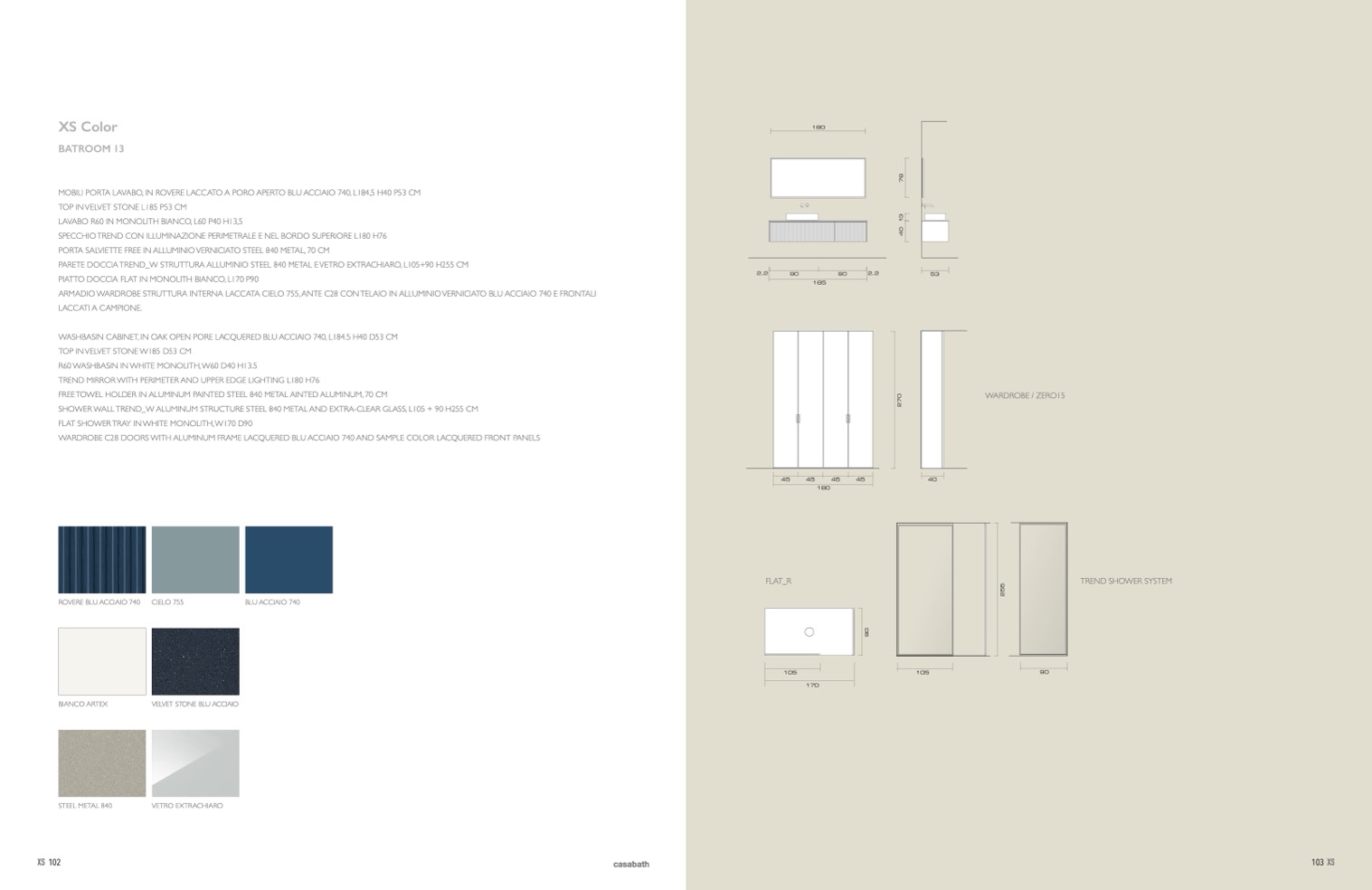 WASHBASIN CABINET, IN OAK OPEN PORE LACQUERED BLU ACCIAIO 740, L184.5 H40 D53 CM