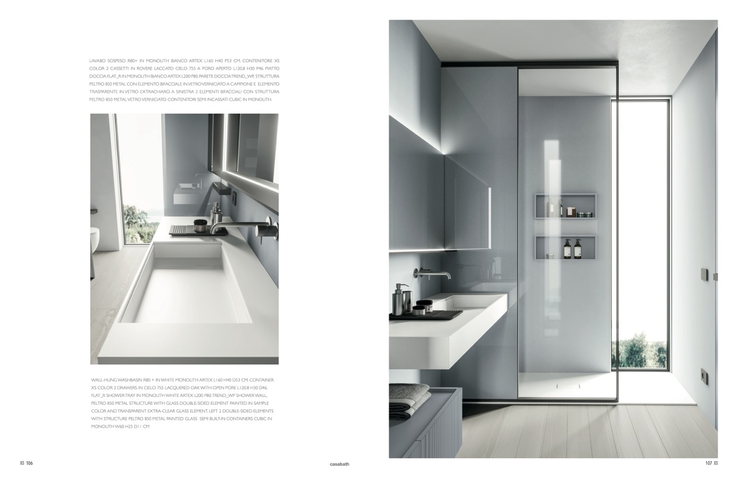 LAVABO SOSPESO R80+ IN MONOLITH BIANCO ARTEX L160 H40 P53 CM. CONTENITORE XS