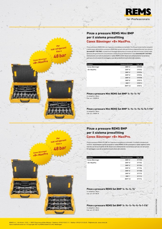Pinze a pressare REMS Set BMP 1⁄4-3⁄8-1⁄2-5⁄8-3⁄4-7⁄8-1-