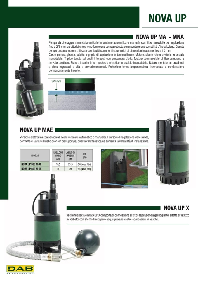 Versione speciale NOVA UP X con porta di connessione al kit di aspirazione a galleggiante, adatta all’utilizzo