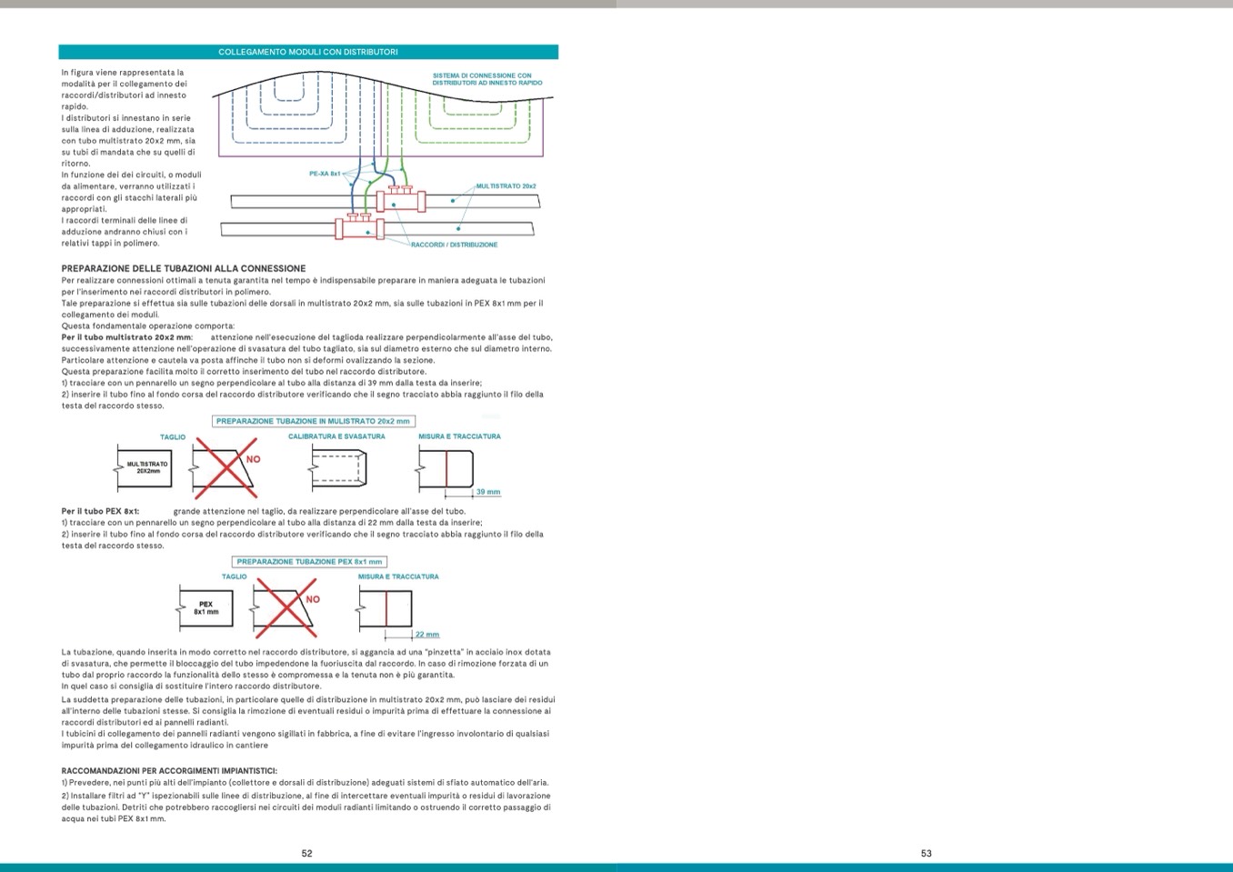 raccordi distributori ed ai pannelli radianti.