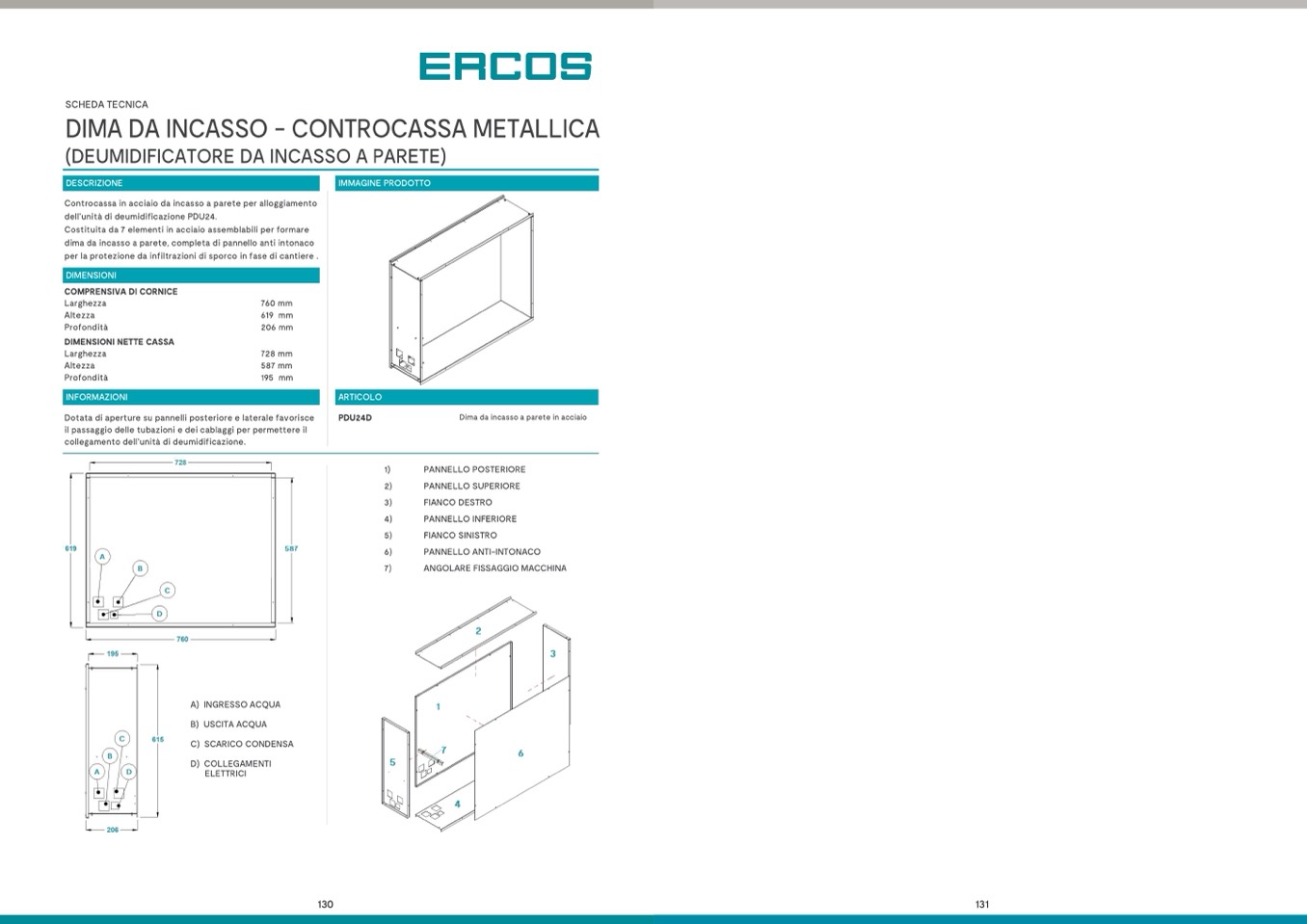 dima da incasso a parete, completa di pannello anti intonaco
