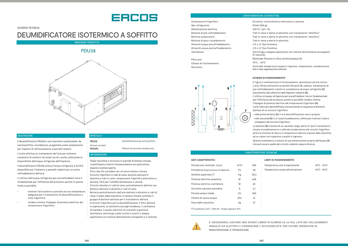 Il deumidificatore PDU38 è una macchina canalizzabile, da