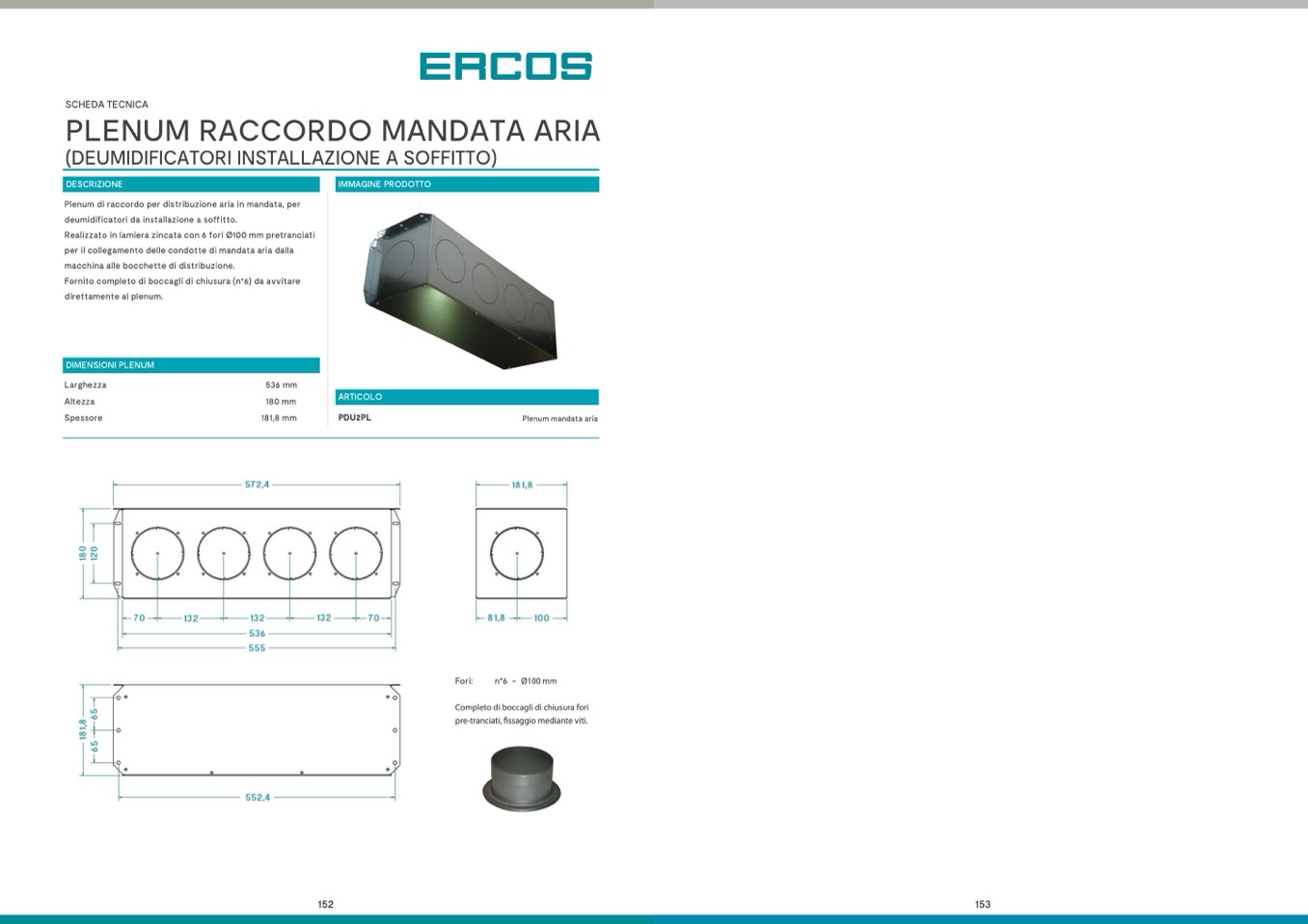 Realizzato in lamiera zincata con 6 fori Ø100 mm pretranciati