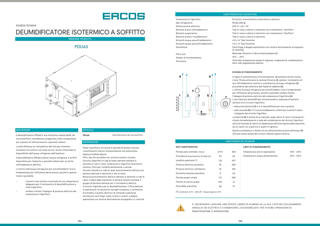 Il deumidificatore PDU60 utilizza l’acqua refrigerata a 15/18°C
