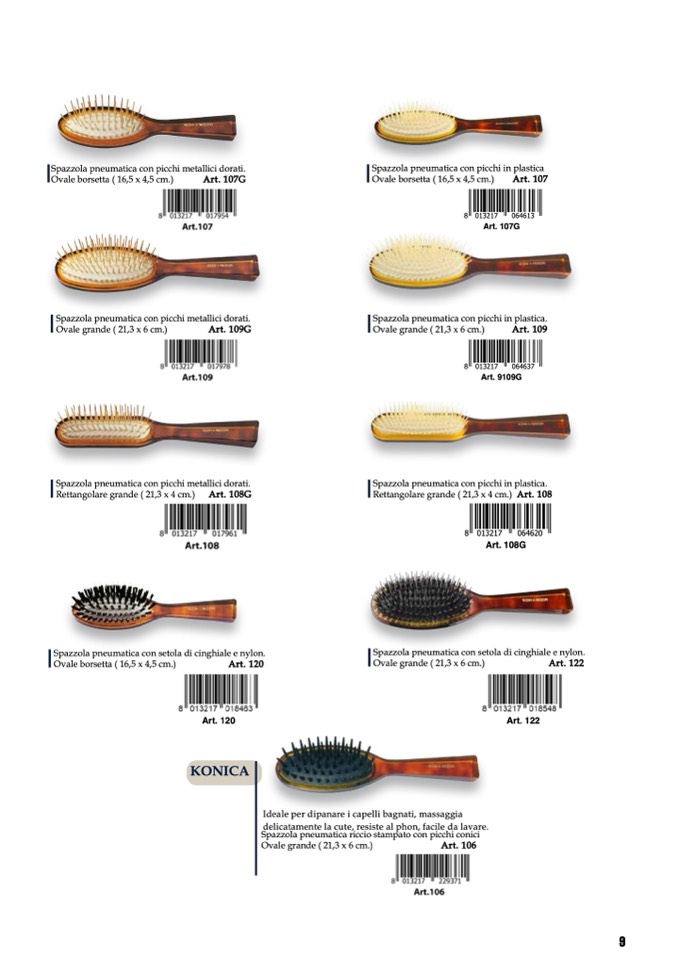 Spazzola pneumatica con setola di cinghiale e nylon.