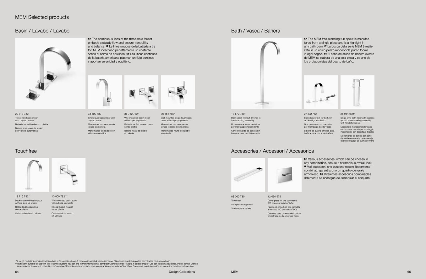 **Particularly suitable for use with the Touchfree system. You can find further information at dornbracht.com/touchfree / Adatta in particolare per l’uso con il sistema Touchfree. Potete trovare ulteriori
