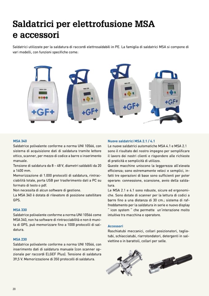 Saldatrici utilizzate per la saldatura di raccordi elettrosaldabili in PE. La famiglia di saldatrici MSA si compone di