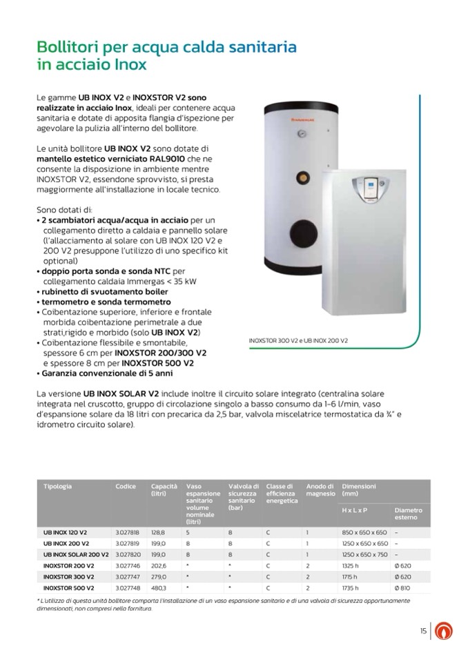 * L’utilizzo di questa unità bollitore comporta l’installazione di un vaso espansione sanitario e di una valvola di sicurezza opportunamente