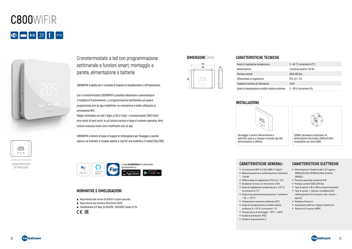 C800WIFIR è adatto per il comando di impianti di riscaldamento o raffrescamento.