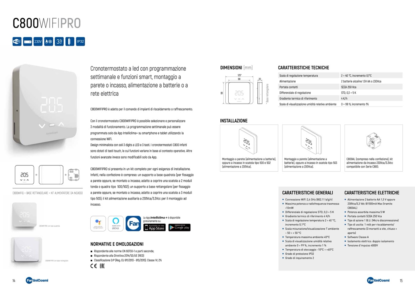 C800WIFIPRO è adatto per il comando di impianti di riscaldamento o raffrescamento.