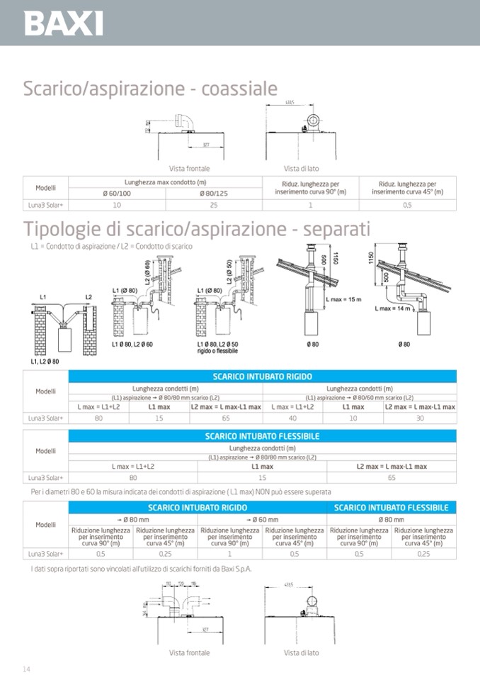 I dati sopra riportati sono vincolati all’utilizzo di scarichi forniti da Baxi S.p.A.
