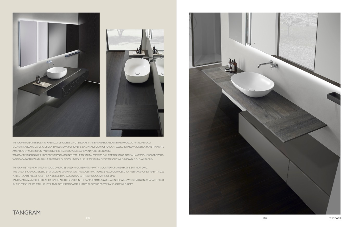 TANGRAM IS THE NEW SHELF IN SOLID OAK TO BE USED IN COMBINATION WITH COUNTERTOP WASHBASINS BUT NOT ONLY.