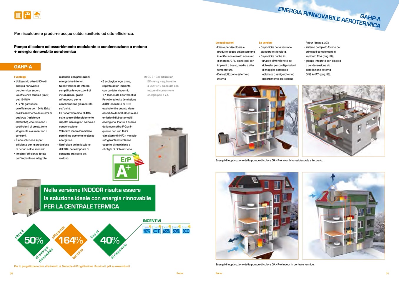 Esempi di applicazione della pompa di calore GAHP-A in ambito residenziale e terziario.