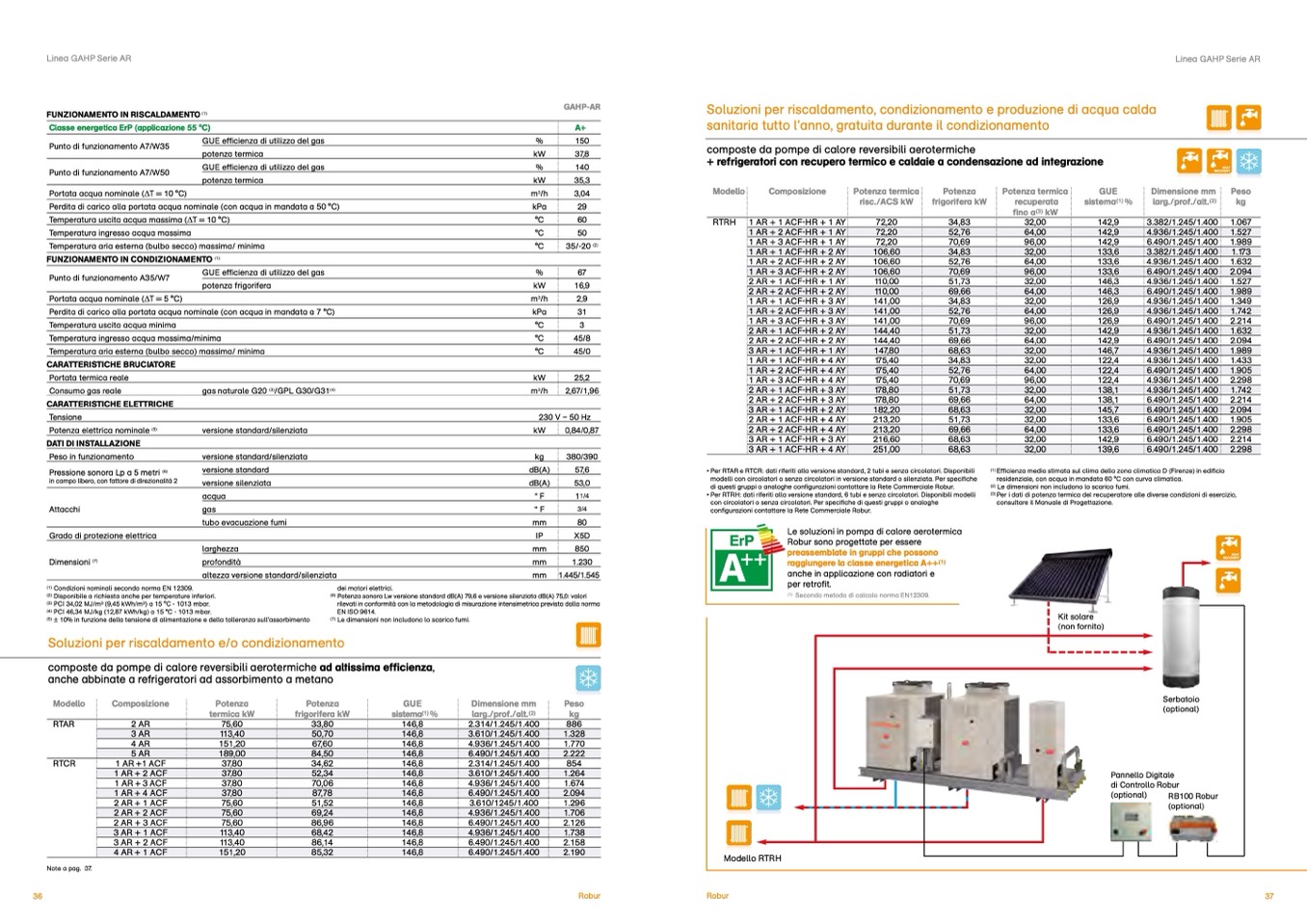Per i dati di potenza termica del recuperatore alle diverse condizioni di esercizio,