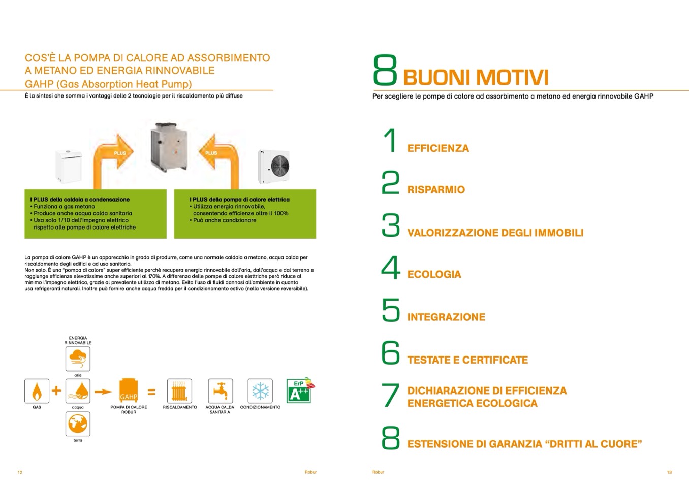 La pompa di calore GAHP è un apparecchio in grado di produrre, come una normale caldaia a metano, acqua calda per