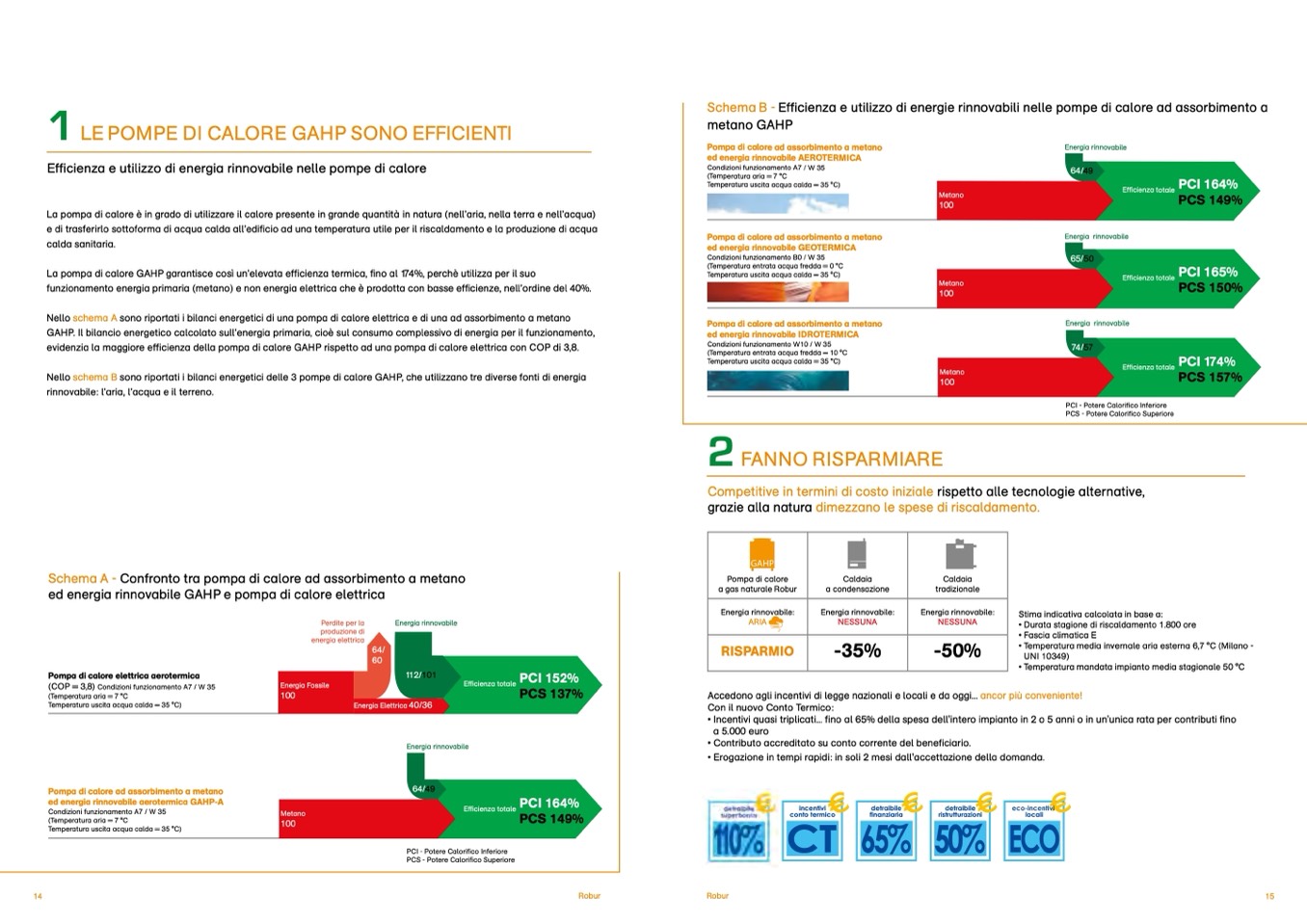 La pompa di calore GAHP garantisce così un’elevata efficienza termica, fino al 174%, perchè utilizza per il suo