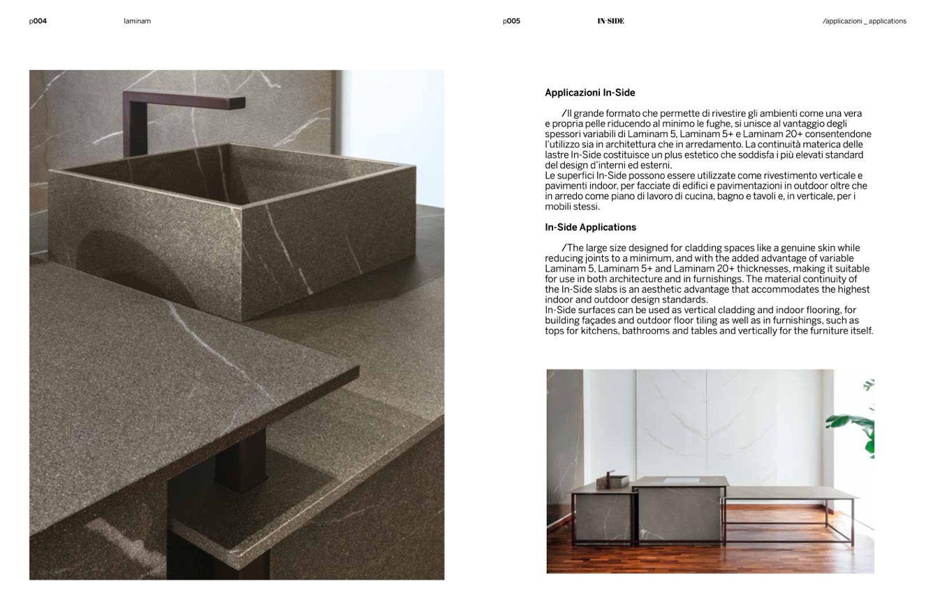 Laminam 5, Laminam 5+ and Laminam 20+ thicknesses, making it suitable