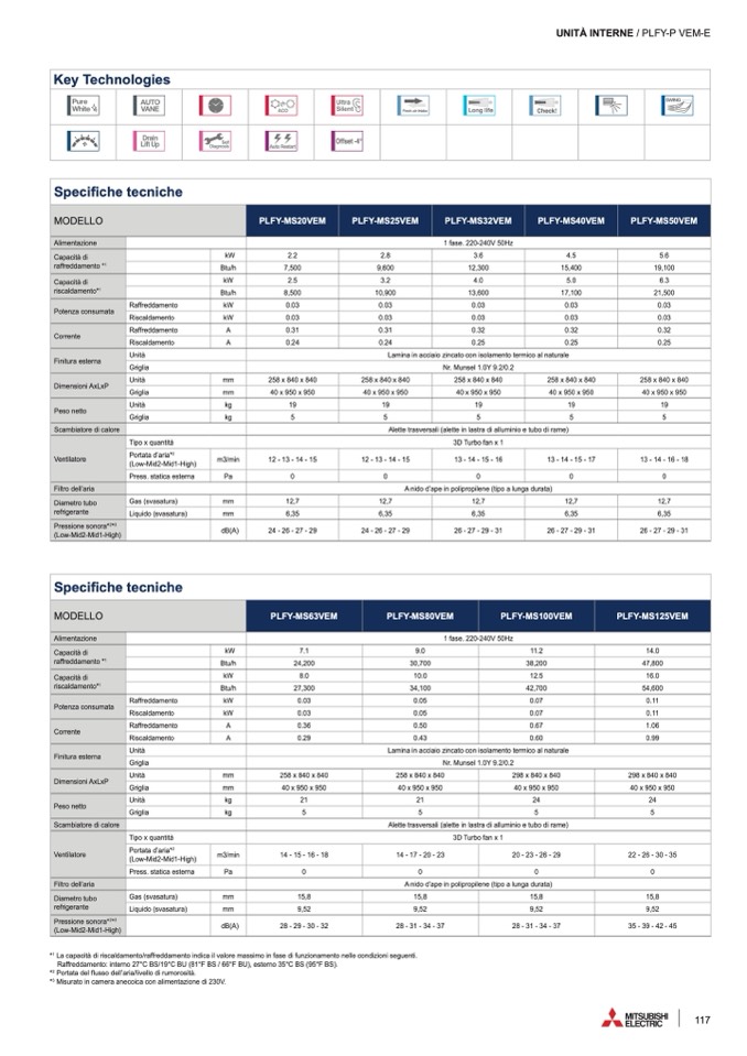 Raffreddamento: interno 27°C BS/19°C BU (81°F BS / 66°F BU), esterno 35°C BS (95°F BS).