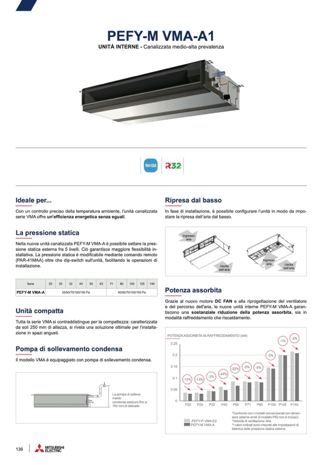 e del percorso dell'aria, le nuove unità interne PEFY-M VMA-A garan-