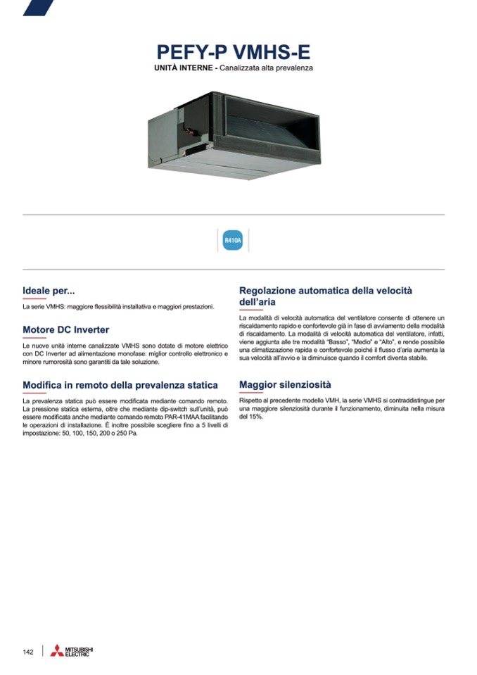 Le nuove unità interne canalizzate VMHS sono dotate di motore elettrico