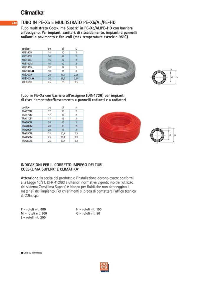 radianti a pavimento e fan-coil (max temperatura esercizio 95°C)