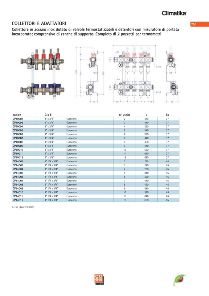 Collettore in acciaio inox dotato di valvole termostatizzabili e detentori con misuratore di portata
