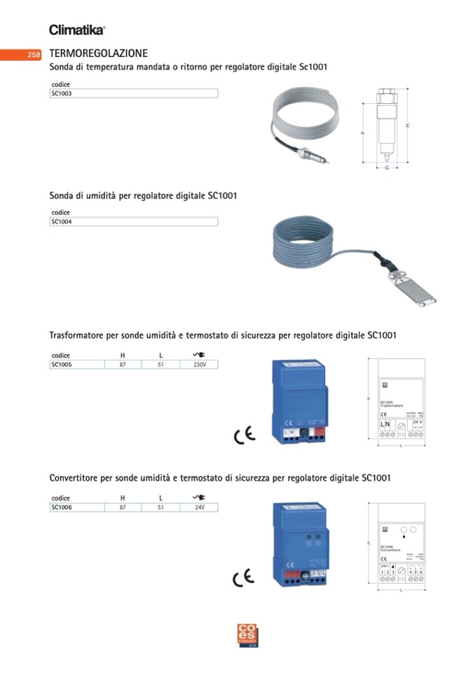 Trasformatore per sonde umidità e termostato di sicurezza per regolatore digitale SC1001