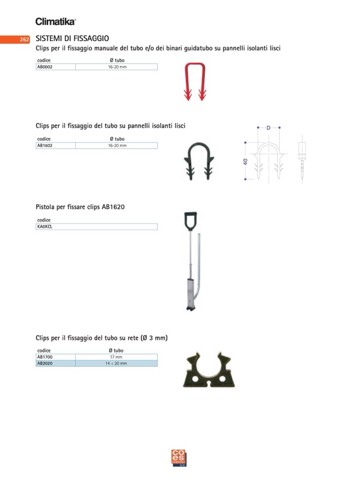 Clips per il fissaggio del tubo su pannelli isolanti lisci