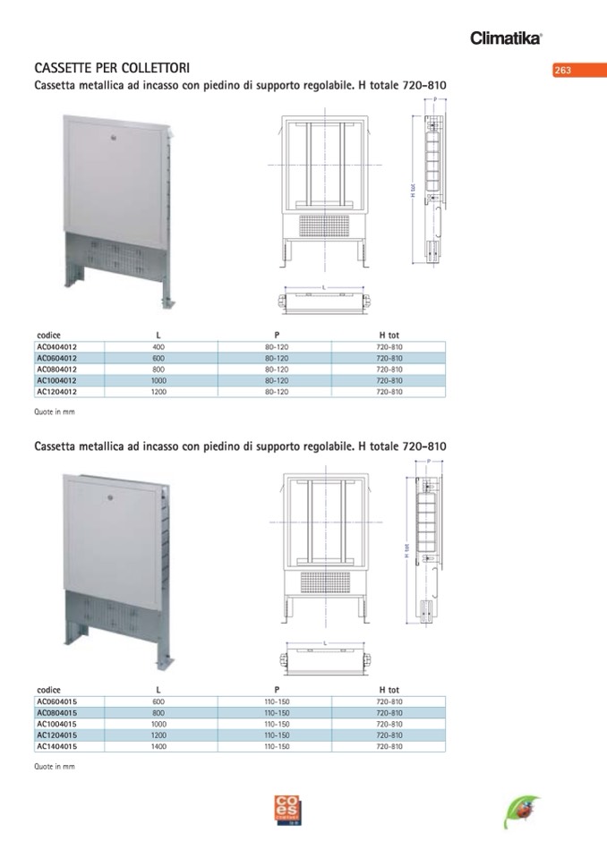Cassetta metallica ad incasso con piedino di supporto regolabile. H totale 720-810