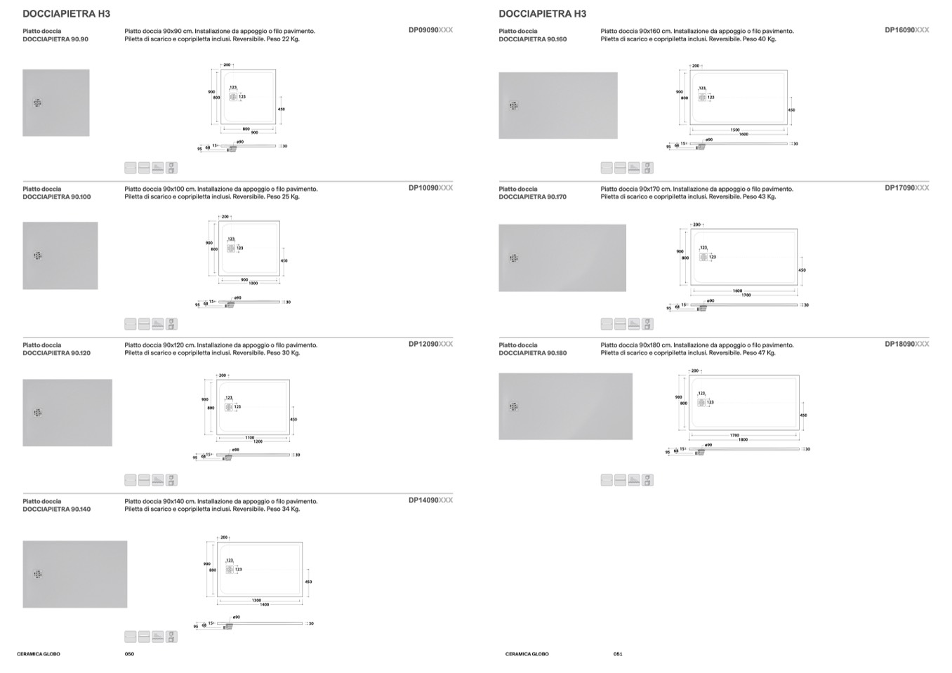 Piletta di scarico e copripiletta inclusi. Reversibile. Peso 25 Kg.