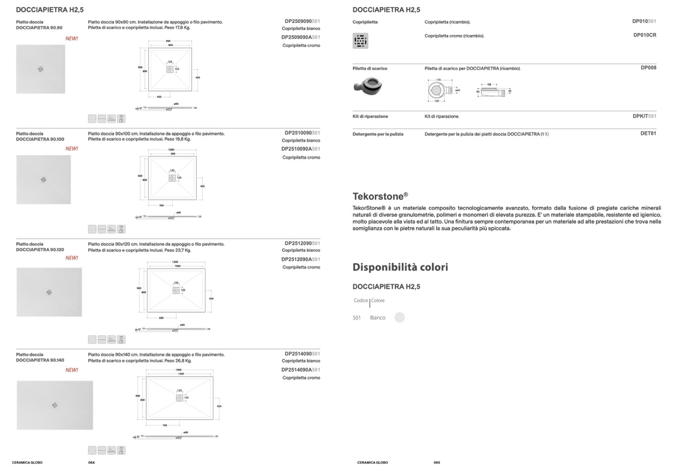 Piletta di scarico e copripiletta inclusi. Peso 19,8 Kg.